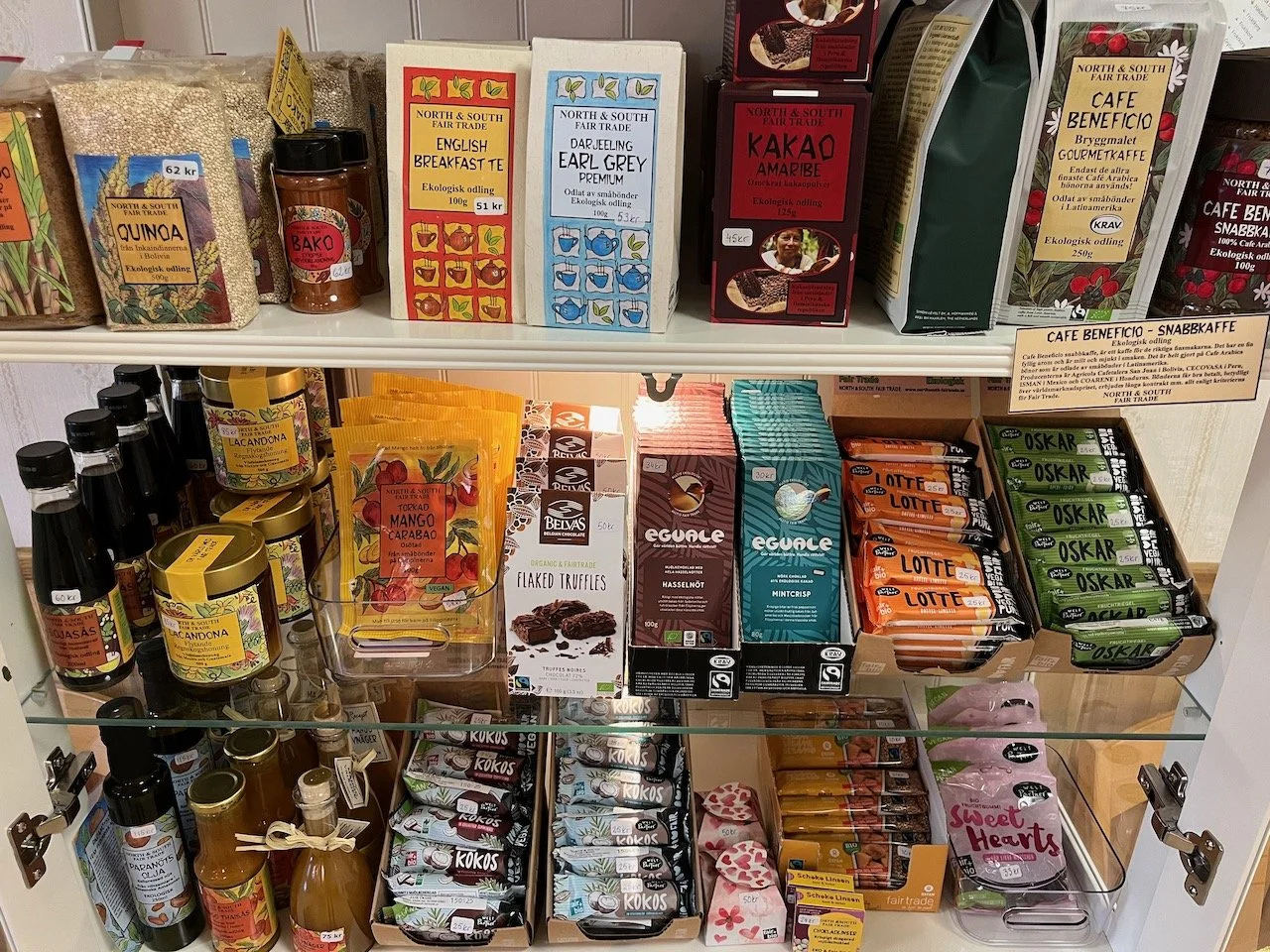 På Solbacka har vi ett litet men naggande gott utbud av produkter från North & South Fair Trade och Fair Trade Company. Passa på ta en titt i skåpet när du är på kyrkan! Det finns mycket både gott och fint och dessutom möjligheten att göra ett litet bidrag för en rättvisare värld!